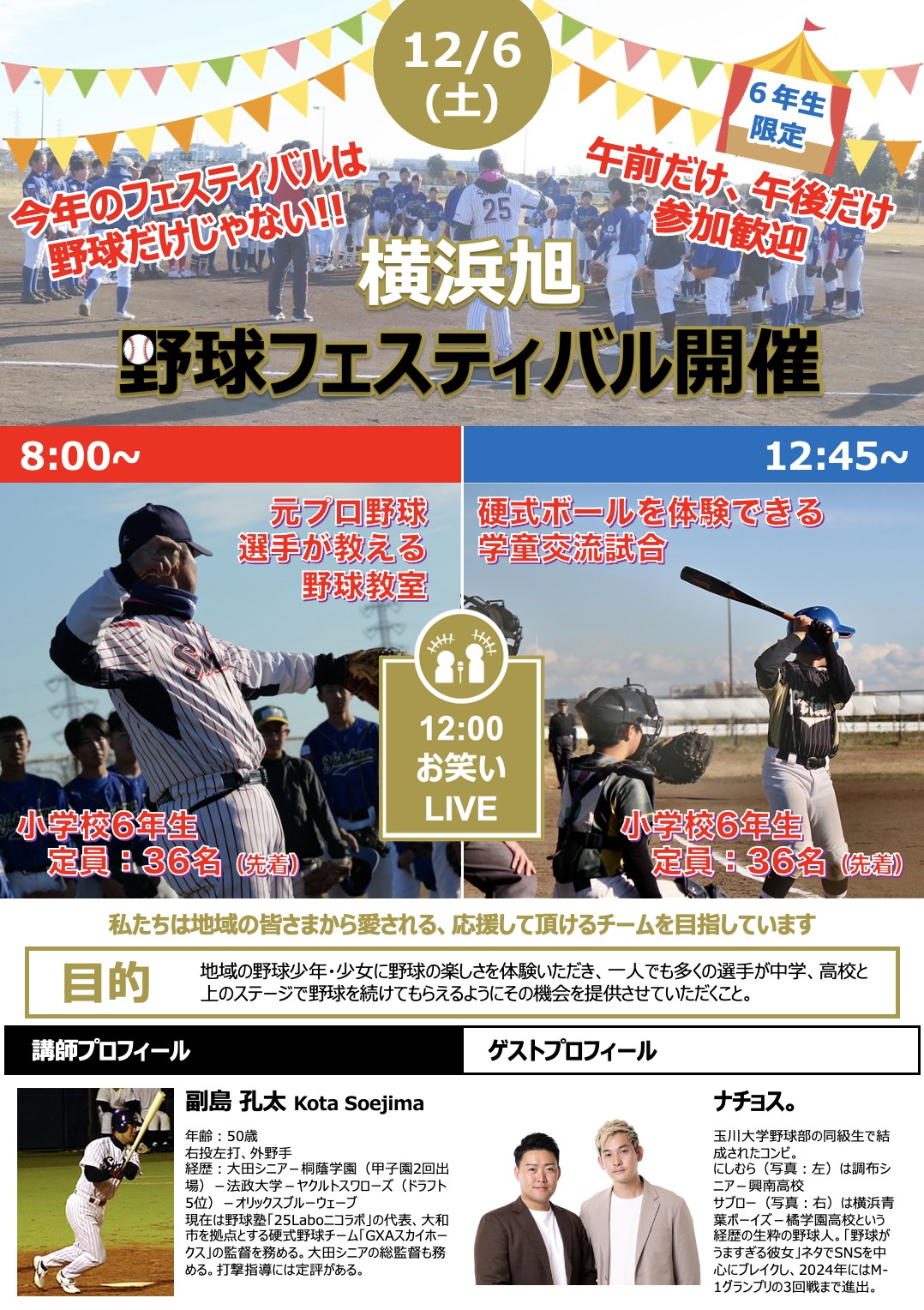 「第2回 横浜旭 野球フェスティバル」開催のお知らせ